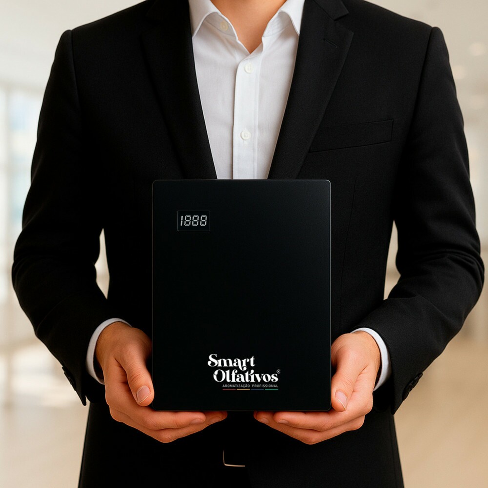 Importante: O Pro 100 deve ser utilizado exclusivamente com as essências Smart Olfativos/Fehomè, formuladas especialmente para este tipo de difusor. Essas essências são lipossolúveis e possuem uma base exclusiva que promove a quebra das matérias-primas em nano partículas, garantindo difusão homogênea e segura. O uso de líquidos comuns, como álcool ou água, não realiza essa quebra corretamente, podendo alterar o aroma, causar irritações e até prejudicar o funcionamento do equipamento. Situações em que não podemos assegurar sua performance e durabilidade.
