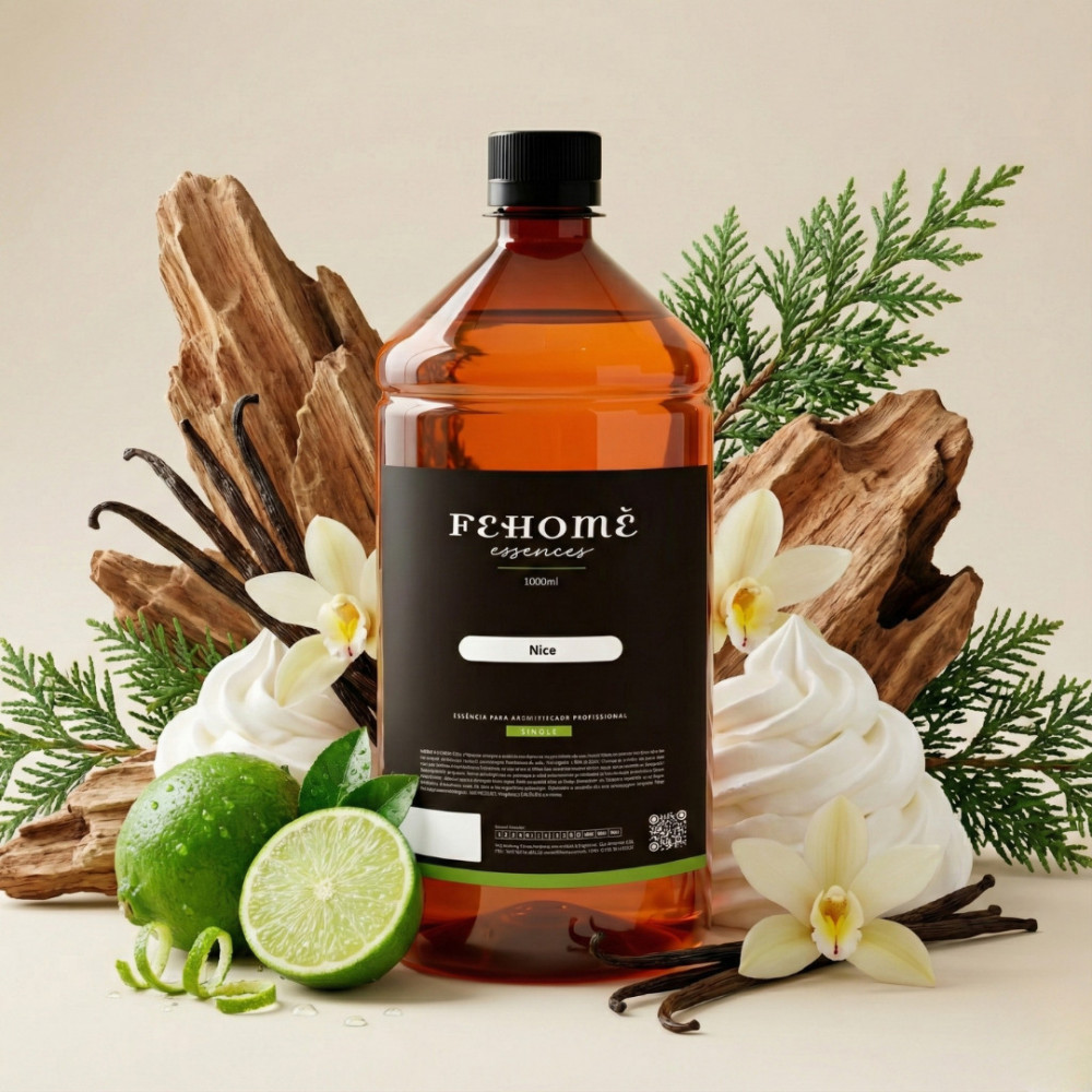Um gourmand elegante com frescor cítrico. Nice abre com a vivacidade da lima da Pérsia, abraça o ambiente com a cremosidade de vanilla e chantilly, e finaliza em um rastro amadeirado sofisticado de cedro do Líbano. Resultado: uma atmosfera de bem-estar, acolhimento e luxo discreto.